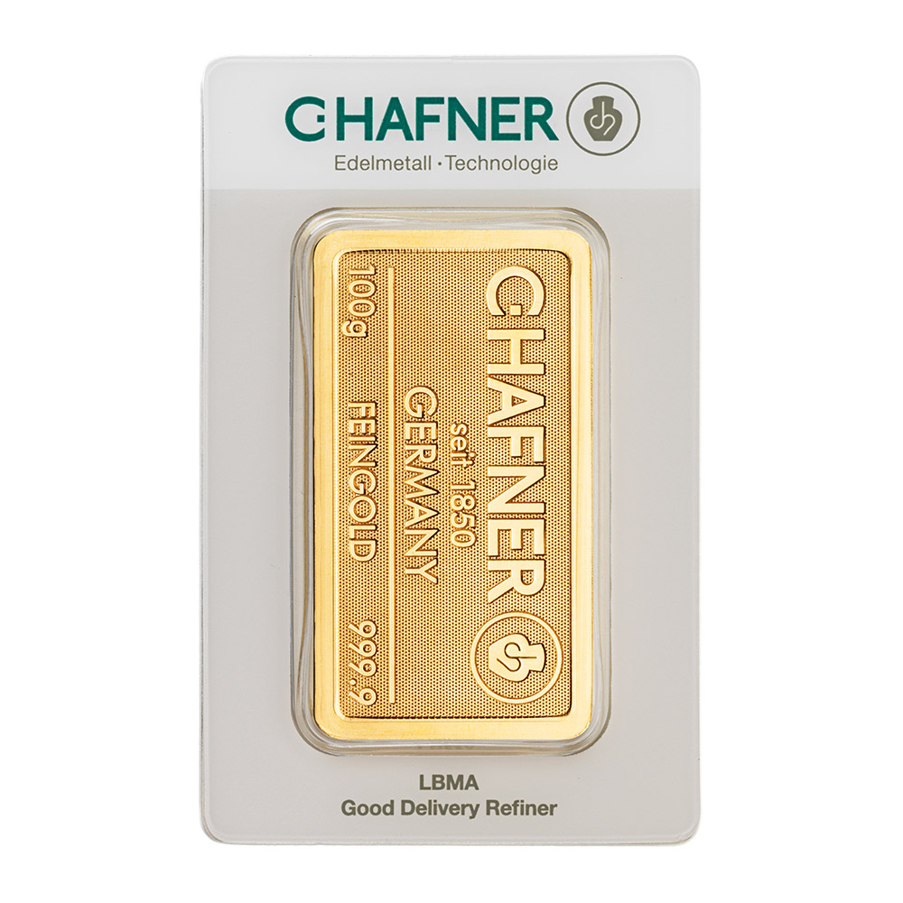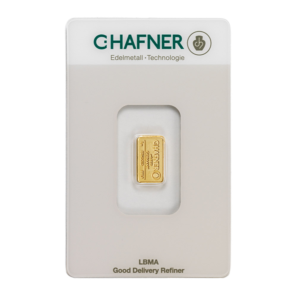 Gold bar of highest purity 999,9. Measurement: 55 x 30 x 3,5mm